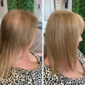 Angel Hair Extensions hair loss integration system is not a wig. This is a permanent system that is worn every day much like hair extensions. We use a special hairpiece made of the finest human hair with a hypoallergenic mesh base which allows the scalp to breathe. This integrates perfectly with your own hair, giving you a totally natural look. Our super light system allows your hair to still grow as normal underneath and causes no tension or pulling on your hair or scalp. We recommend you have maintenance carried out on the system every 6-8 weeks. The hair we use can last 6-9 months with the correct aftercare. Contact us today to arrange your friendly consultation.