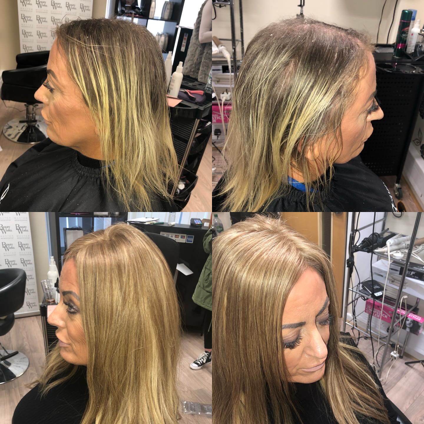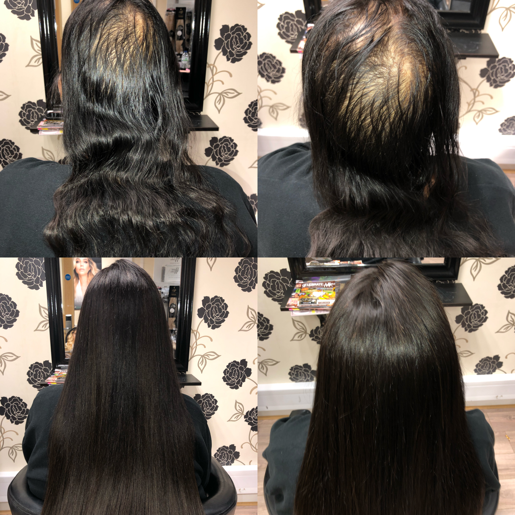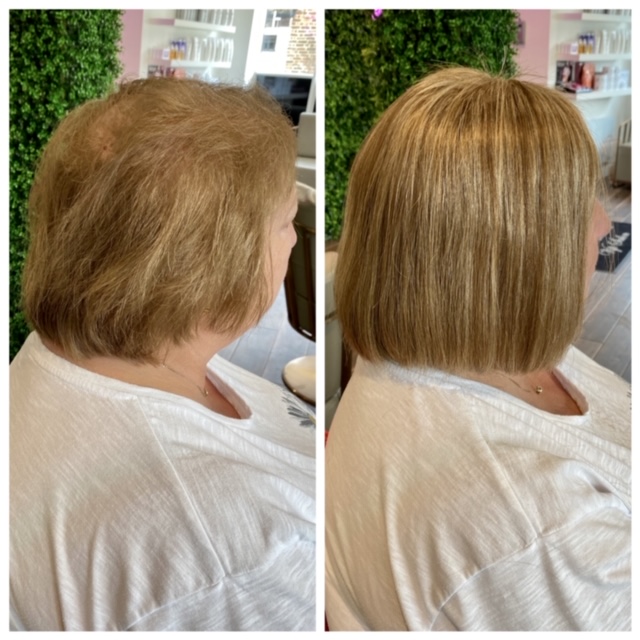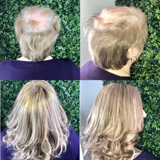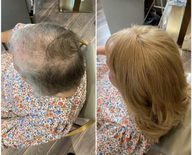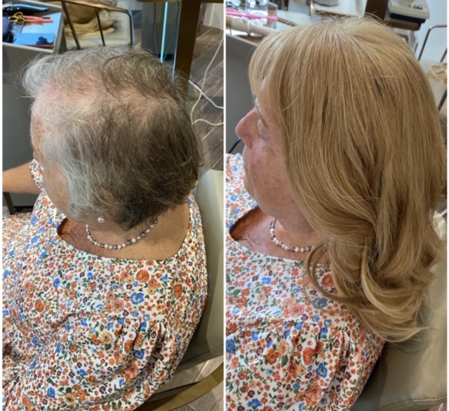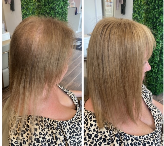Angel Hair Extensions hair loss integration system is not a wig. This is a permanent system that is worn every day much like hair extensions. We use a special hairpiece made of the finest human hair with a hypoallergenic mesh base which allows the scalp to breathe. This integrates perfectly with your own hair, giving you a totally natural look. Our super light system allows your hair to still grow as normal underneath and causes no tension or pulling on your hair or scalp. We recommend you have maintenance carried out on the system every 6-8 weeks. The hair we use can last 6-9 months with the correct aftercare. Contact us today to arrange your friendly consultation.